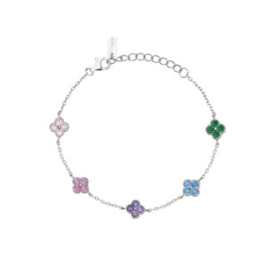 Bracciale Mabina della collezione Jasmine realizzato in argento con fiori multicolor in zirconi e tormaline.