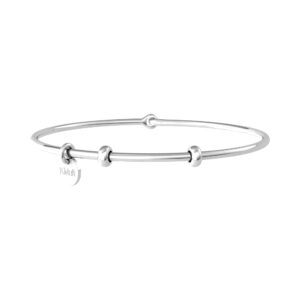 Apri la tua bangle HULA-HOOP, sfila lo stopper e inserisci i tuoi charm. Ti consigliamo dopo ogni charm di aggiungere uno stopper per separarli meglio. Gli stopper sono acquistabili separatamente.