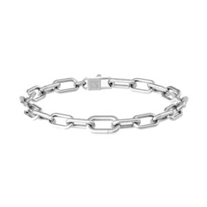 Bracciale Kidult componibile in acciaio a maglia larga con catena forzatina e tre link apribili. Inserisci nel link da 1 a 2 charm.