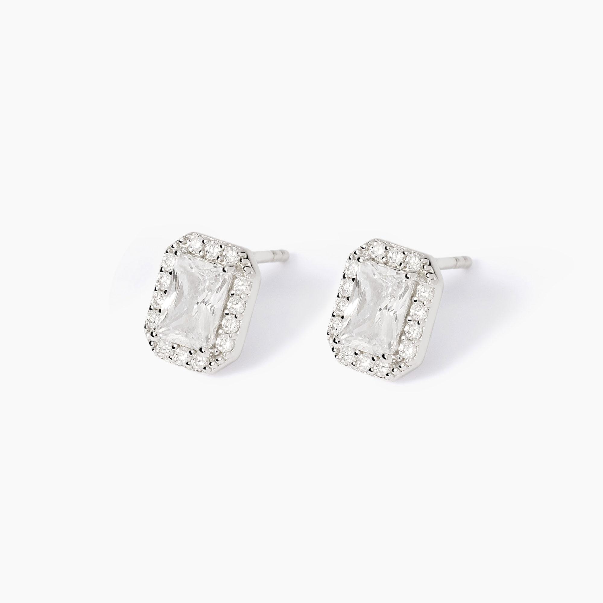 Orecchini lobo Mabina della collezione Cool Or Rétro realizzati in argento rodiato con zircone taglio ottagonale e zirconi bianchi.