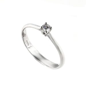 Anello solitario a gambo dritto realizzato in oro bianco con diamante naturale.
