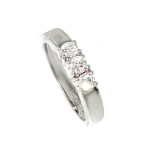 Anello trilogy realizzato in oro bianco con tre diamanti naturali.