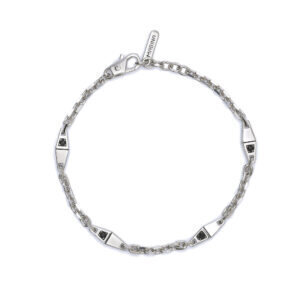 Bracciale Mabina della collezione Modernista realizzato in argento rodiato con catena rolรฒ e inserti con zirconi neri.