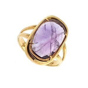 Anello in oro giallo con ametista, incastonatura a griffe.