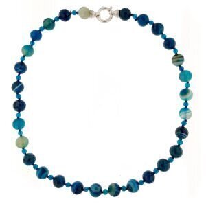 Collana in agata blu di 4 mm e 10 mm, sfere sfaccettate alternate.