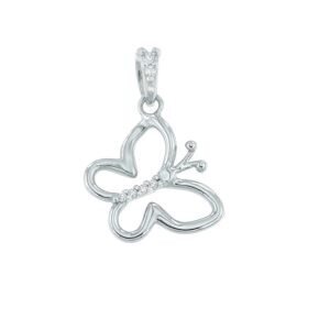 Ciondolo in oro bianco e zirconi a forma di farfalla.