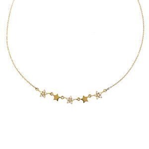 Collana in oro giallo con catenina rolรฒ e 5 stelle di cui tre con zirconi incastonati.