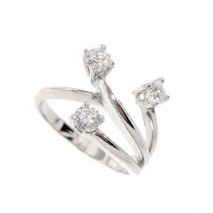 Raffinato trilogy in oro bianco con diamanti con montatura contrariรจ.