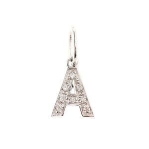 Ciondolo iniziale โAโ in stampatello in oro bianco con diamanti incastonati.
