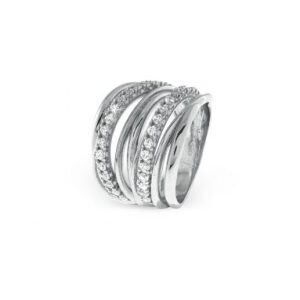 Anello UNOAERRE della Collezione Silver, a fascia multifilo in argento con zirconi bianchi.