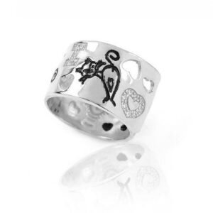 Anello in Argento bagnato in argento con Cristalli Swarosky e smalto Nero.