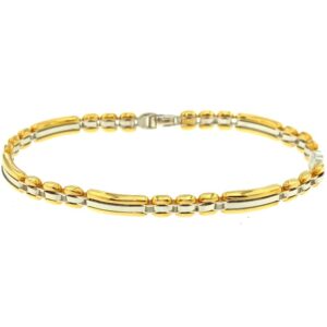 Bracciale uomo in oro giallo e bianco lucido e satinato.