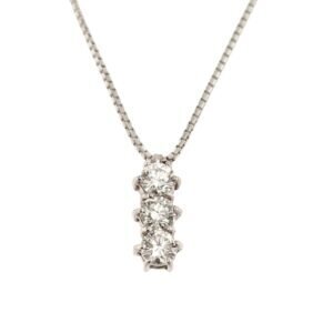 Catena veneziana delicatamente sottolineata da una trilogia di diamanti.