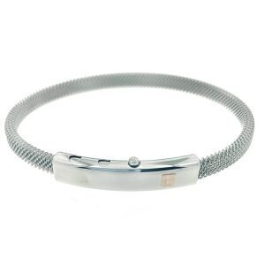 Bracciale Borsari della collezione Atlante realizzato in acciaio, con dettaglio in oro rosรฉ sulla chiusura. Regolabile a 3 posizioni.