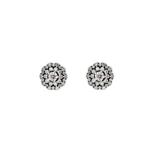 Orecchini a fiore realizzati in oro bianco con diamanti naturali.