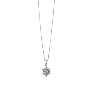 Catenina veneziana realizzata in oro bianco con rosetta composta da diamanti naturali. Chiusura con moschettone.