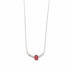 Girocollo realizzato in oro bianco con centrale composto da rubino e diamanti naturali. Chiusura con moschettone.