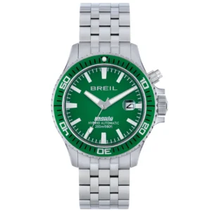Orologio Breil cronografo Sail con quadrante verde scuro, sfere e indici trattati con luminous si illuminano garantendo una perfetta lettura. Realizzato interamente in acciaio, è caratterizzato dalla lunetta in acciaio IP verde e coniuga perfettamente tecnica e design.