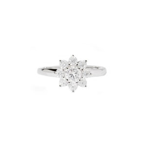 Anello Mabina della collezione Eden realizzatoย in argento rodiato con zirconi taglio girasole.