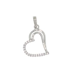 Ciondolo a forma di cuore realizzato in oro bianco e zirconi.