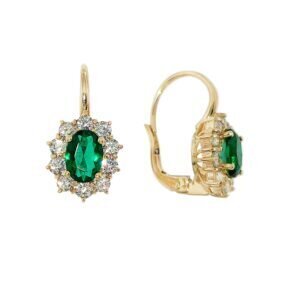 Orecchini “Kate” a monachella realizzati in oro giallo ed impreziositi con zirconi bianchi e verde.