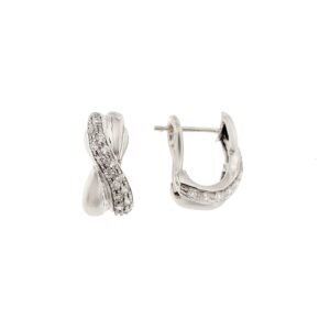 Orecchini realizzati in oro bianco con forma intrecciata ed impreziositi con zirconi.