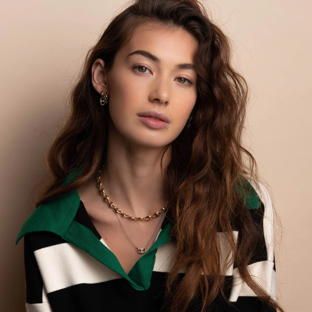 La collana Ti Sento รจ una fusione audace ma disinvolta di lusso moderno ed eleganza senza tempo realizzata in pregiato argento sterling 925. Questa creazione esclusiva presenta una delicata catena impreziosita da anelli intrecciati, alcuni con una radiosa placcatura in oro giallo, altri in luminoso argento placcato platino. Sparsi tra di essi, gli zirconi cubici incastonati a pavรฉ catturano la luce, aggiungendo la giusta quantitร di brillantezza e movimento.