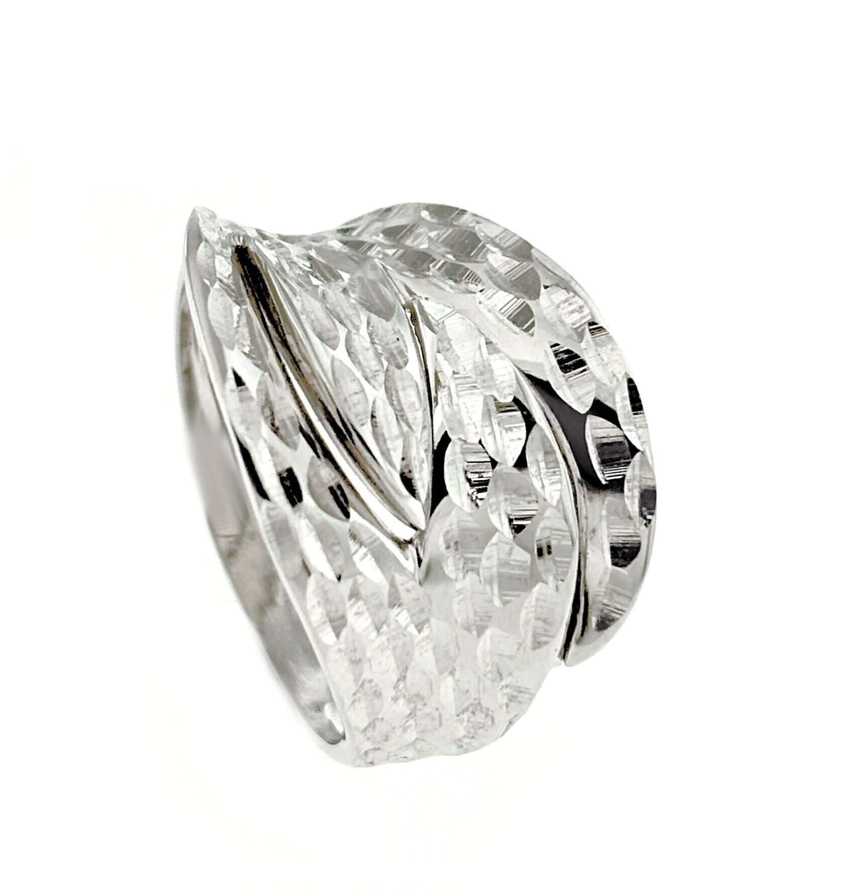 Anello a fascia realizzato in oro bianco con lavorazione sfaccettata.