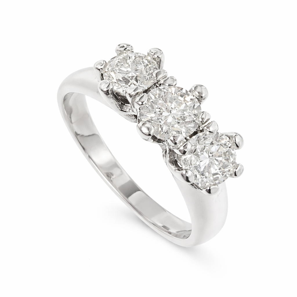 Anello Trilogy in oro bianco diamanti. Il numero 3: simbolo di forza, purezza e amore.