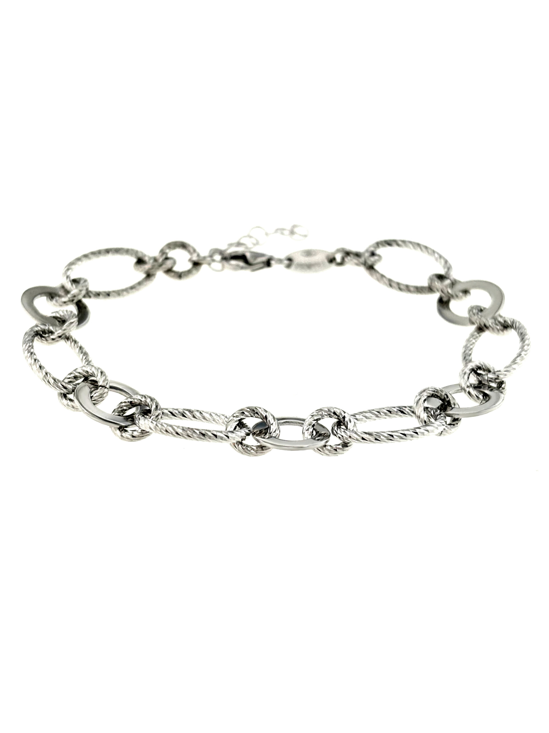 Bracciale Fraboso Argento realizzato in argento con doppia lavorazione, liscia e sfaccettata. Chiusura con moschettone.