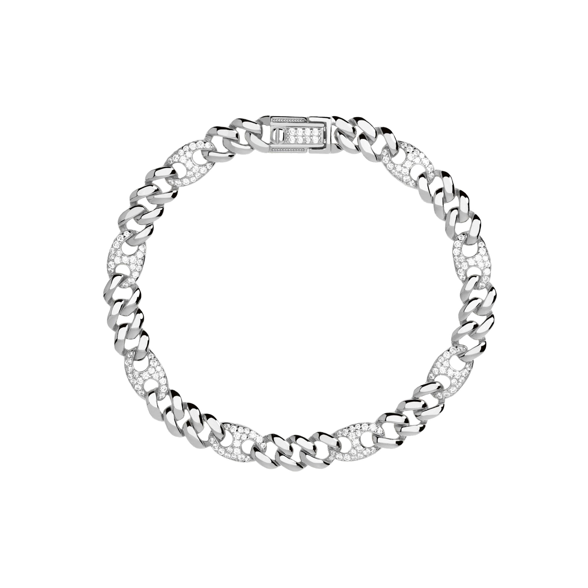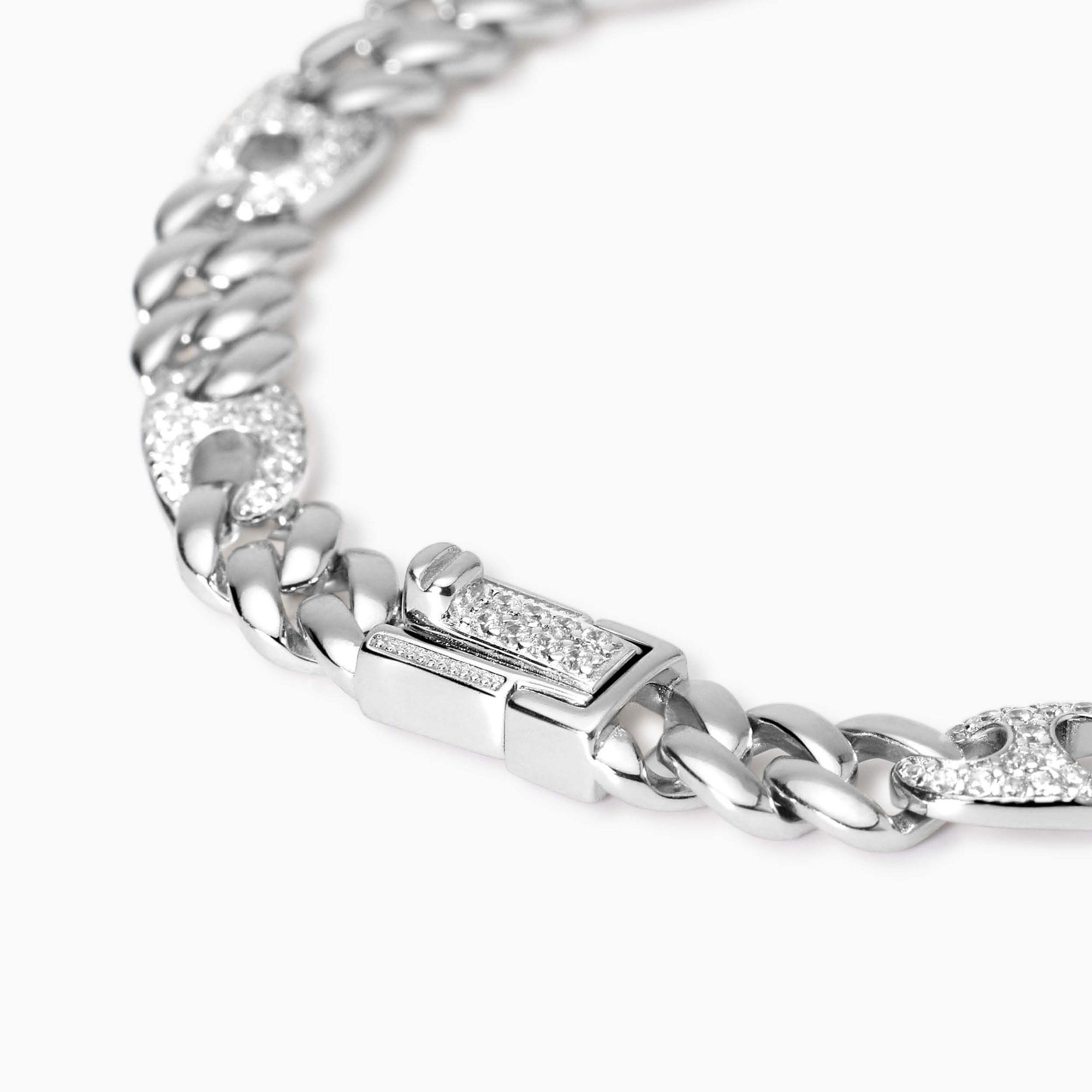 Bracciale Mabina della collezione Privilegio realizzato in argento con catena groumette, maglie marine e zirconi.
