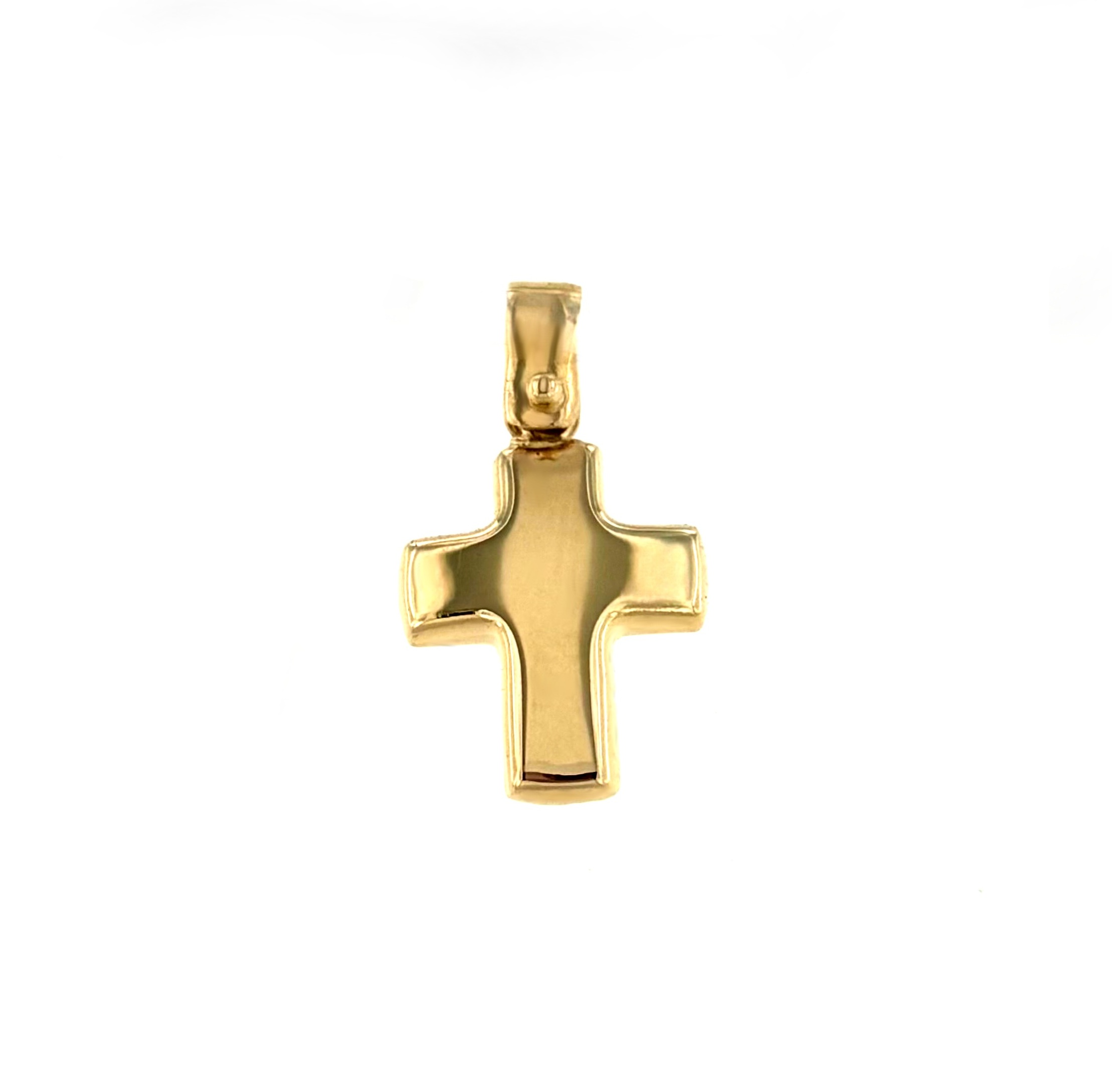 Croce bombata in oro giallo con finitura lucida.