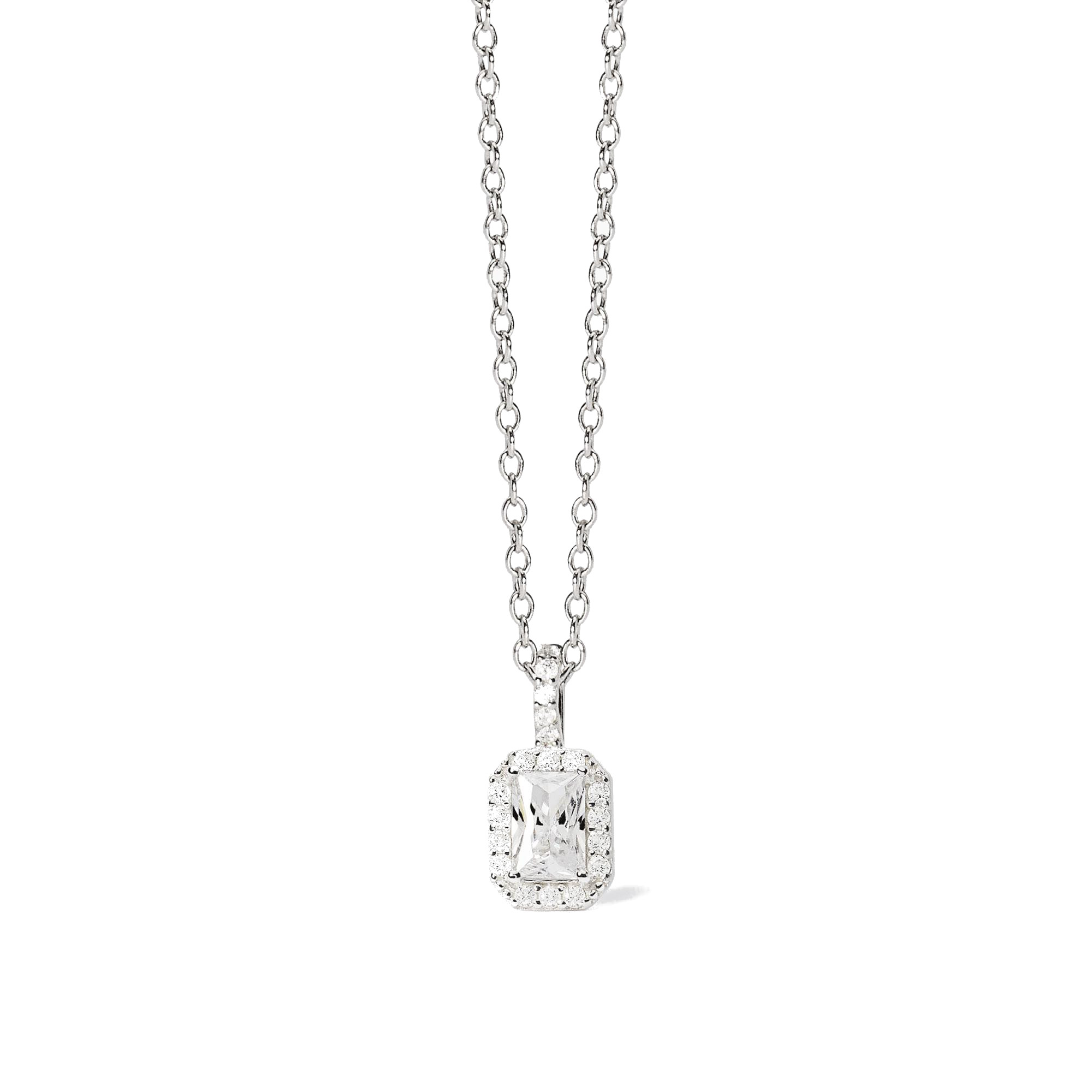 Collana Mabina della collezione Cool Or Rétro realizzati in argento rodiato con catena rolò, con zircone taglio ottagonale e zirconi.