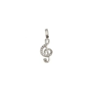 Ciondolo a forma di chiave di violino realizzato in oro bianco ed impreziosito con zirconi.